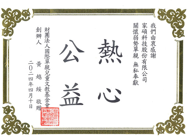 家庭,是孩子最初的避風港,但對許多單親家庭而言,這個避風港常因突發的變故而動搖。家碩科技自2023年起,每月固定捐款予國際單親兒童文教基金會,讓單親家庭在面臨突發變故時獲得幫助,避免生活崩解,陷入貧困循環。