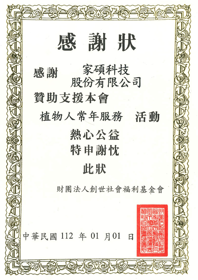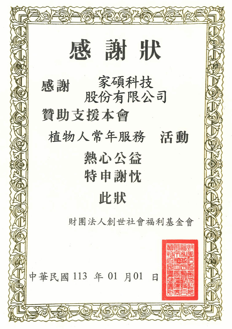 我們關注重度臥床者及植物人的照護議題,安養照護需要持續的資源,自2023年起,家碩科技每月固定捐款予創世基金會,讓專業團隊能專注於照護工作。