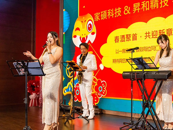 藝術能為社會帶來溫度,也能為企業文化注入更多靈感與凝聚力。於春酒活動我們特別邀請自由音樂人團隊 「藝想音樂設計」 現場演出,讓同仁在輕鬆愉悅的音樂氛圍中迎接新的一年,增進彼此交流,打造更具活力的企業文化,同時為本地音樂人提供展演舞台,促進文化共融,讓藝術成為企業與社會共同的養分。